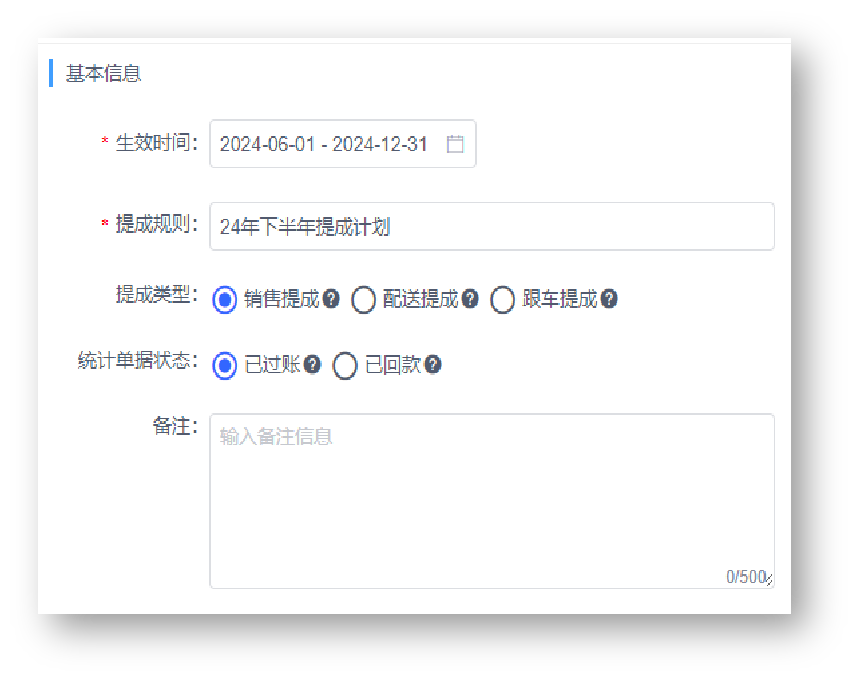 11. 提成管理中配送/跟車提成,業(yè)務(wù)員/客戶在同一時(shí)段支持添加多個(gè)相同提成類型的提成規(guī)則
