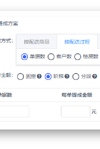 12. 配送/跟車提成支持配送完成后立即計(jì)算提成;配送提成方式增加單據(jù)數(shù)、客戶數(shù)、樓層數(shù)