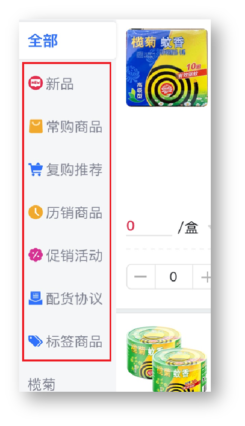 23. 新開單中商品選擇器調(diào)整,增加新品、常購、復(fù)購、歷銷、搭贈(zèng)、促銷、配貨協(xié)議等分裂,增加提成字段方案