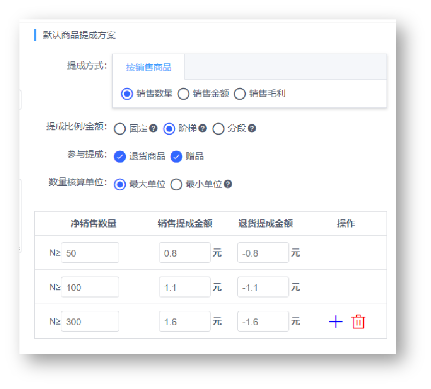10. 提成管理,銷售、配送、跟車提成均支持按階梯、分段提成