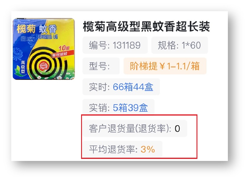 24. 新開單中商品選擇器,增加“客戶退貨量(退貨率)”、“平均退貨率”字段;將“歷銷數(shù)量”名稱改為“實(shí)銷數(shù)量”
