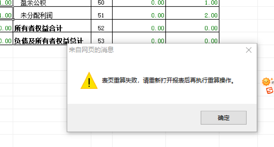 3、ERP打開(kāi)總賬財(cái)務(wù)報(bào)表空白/或提示表頁(yè)重算失敗