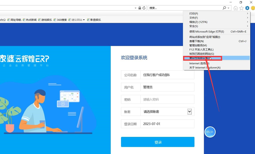 云輝煌ERP13.5/15.0/15.1/15.11,在ie瀏覽器、360瀏覽器、edge瀏覽器使用過(guò)程中出現(xiàn)腳本執(zhí)行報(bào)錯(cuò)以及閃退等現(xiàn)象,或者是條碼打印、總賬報(bào)表打開(kāi)報(bào)錯(cuò),這種就是沒(méi)有設(shè)置ie兼容性,一般這種情況設(shè)置ie兼容性后重新登錄即可