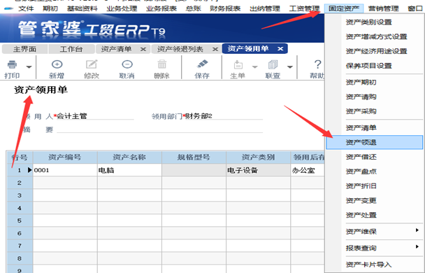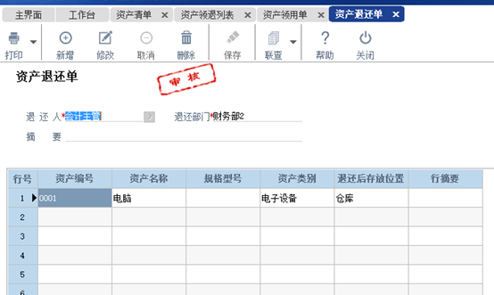 注意:資產(chǎn)領退切實遵循“誰用誰領,誰領誰退”原則(參照對象為使用人、使用部門)。