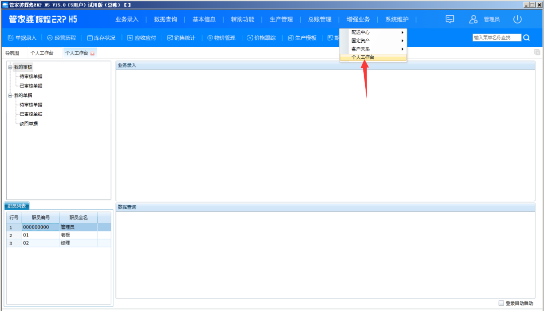 增強業(yè)務(wù)——個人工作臺 如下圖: