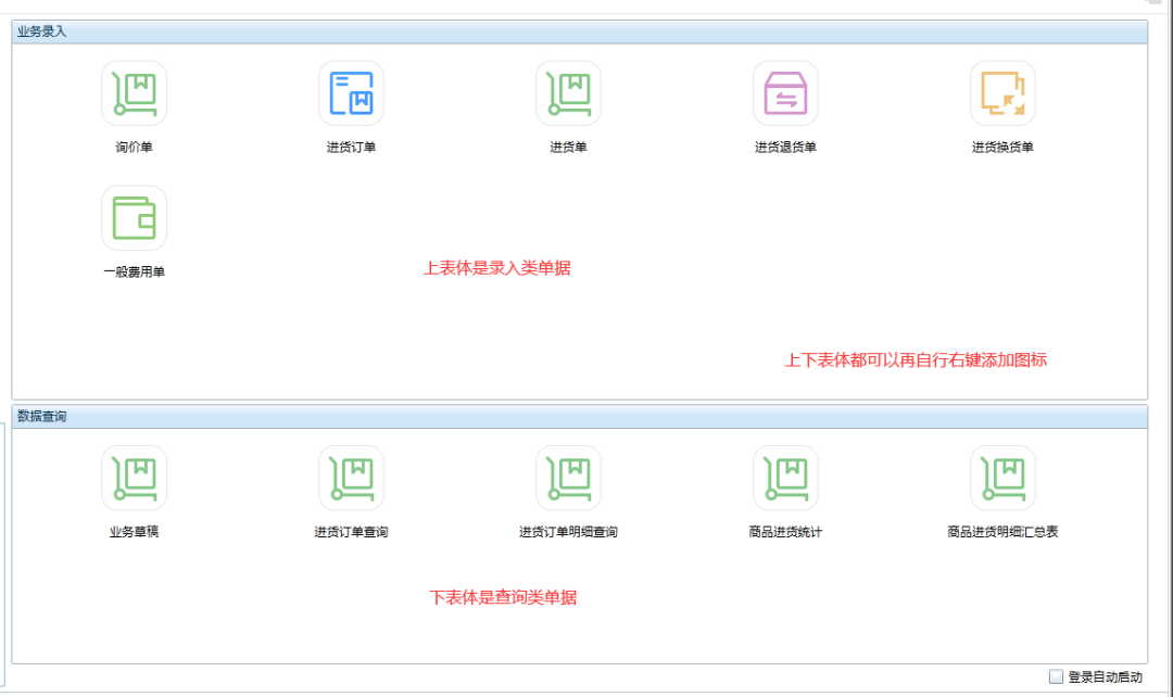 分上下顯示界面,上面的部分可以添加單據(jù),下面的部分可以添加報表。