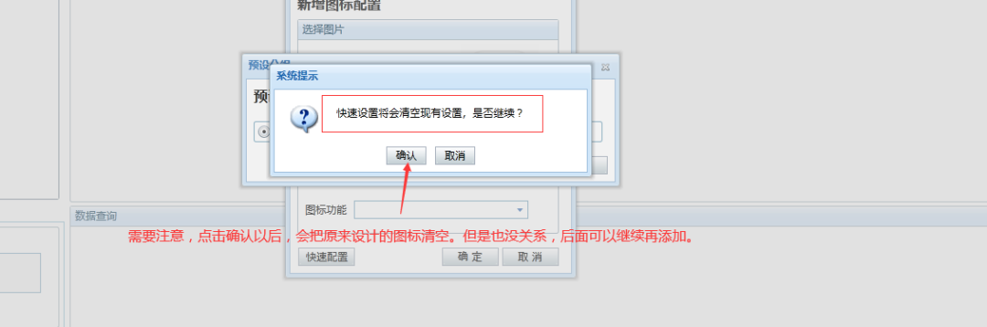 快速配置點擊確認以后,會清空原先設(shè)置的圖標。
