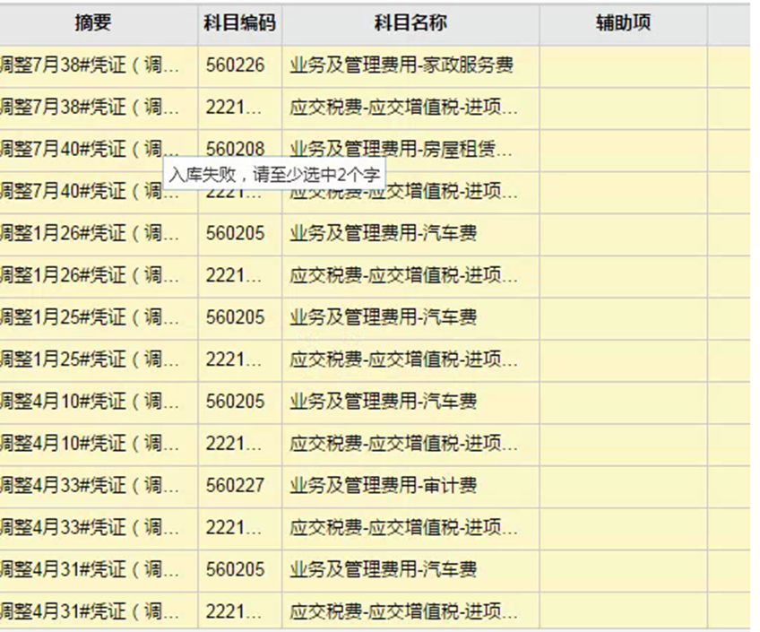 問題現(xiàn)象 T+在使用Ctrl+Alt+H取消記賬的時(shí)候,提示入庫失敗,請(qǐng)至少選擇兩個(gè)字