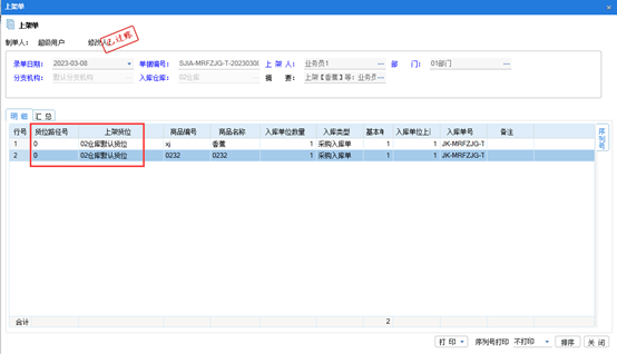 二、倉儲運(yùn)輸管理-倉儲運(yùn)輸管理-上架單,做上架單調(diào)入庫單,同一個倉庫需要上架的商品可以做在一張上架單中,便于倉庫人員根據(jù)貨位及貨位路徑號對商品進(jìn)行上架。