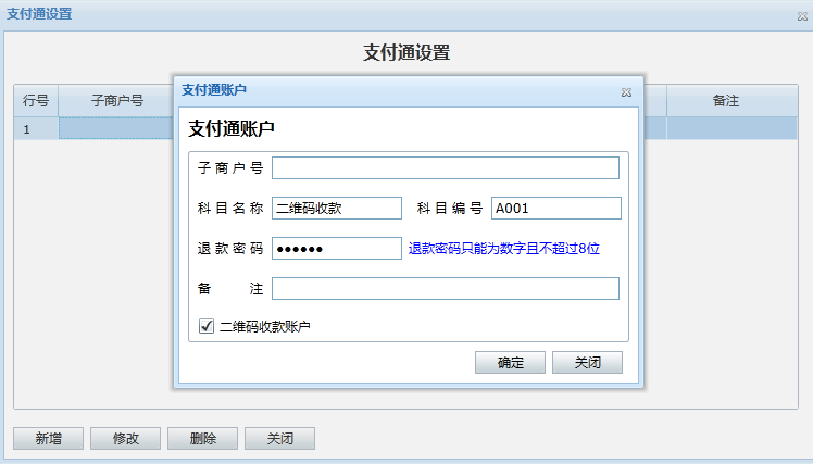 在系統(tǒng)維護(hù)-第三方支付-支付通設(shè)置中,勾選【二維碼收款賬戶(hù)】配置確定;