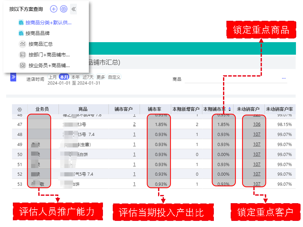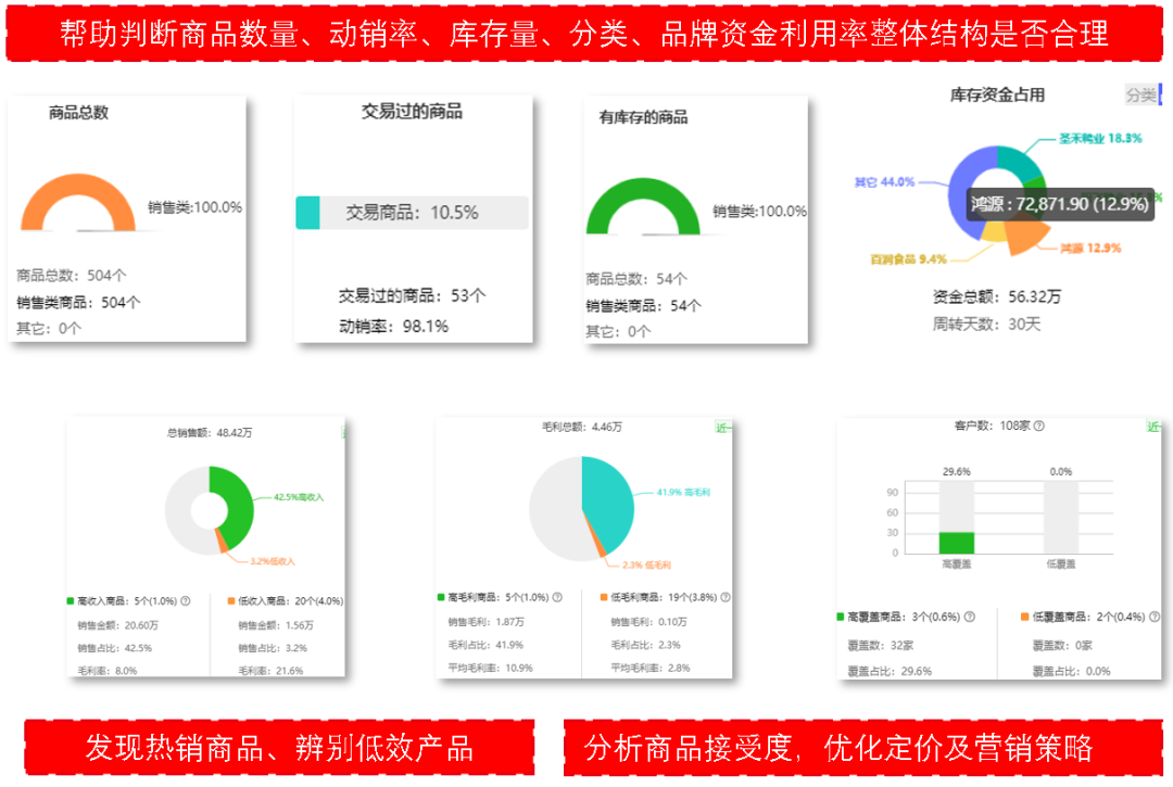 提供詳實的客戶活躍狀態(tài)數(shù)據(jù),幫助企業(yè)明確不同層級關(guān)鍵營銷客戶、動作。 緊盯核心、重要、普通客戶 核心客戶一旦出現(xiàn)下滑、流失趨勢立即監(jiān)控反饋,早做反應(yīng)。 重要客戶有潛力,就得給點優(yōu)惠,幫他們成長。 普通客戶也別小看,說不定就是因為從你這兒拿得少。多關(guān)注他們,生意就能翻倍。 好生意能夠進(jìn)行商品、品牌、品類,多角度分析,幫你做決策