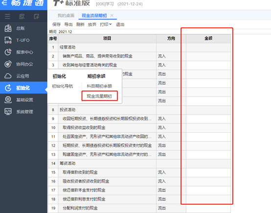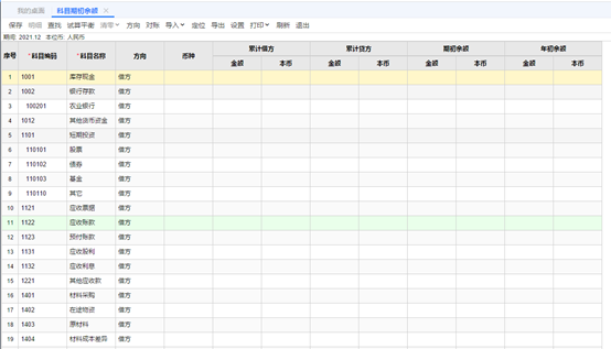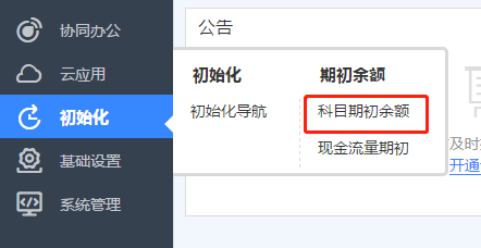 4.初始化 點擊初始化->科目期初余額。