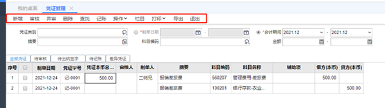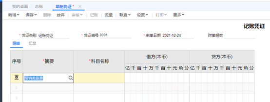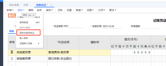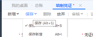 填制完成后點擊保存,或者保存新增并填制下一張憑證。