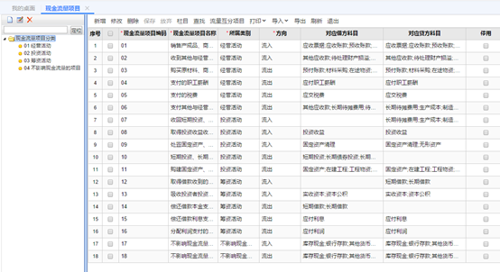 ⑦現(xiàn)金流量項目 點擊基礎(chǔ)設(shè)置->現(xiàn)金流量項目,這里可以修改現(xiàn)金流量項目和現(xiàn)金流量項目對應(yīng)科目。