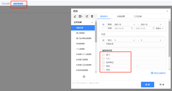 輔助賬在勾選下面的某個輔助項時,查找結(jié)果只會出現(xiàn)符合該輔助項的科目。
