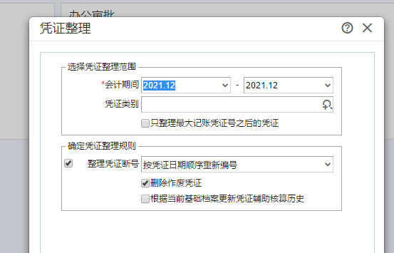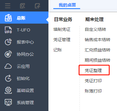 憑證刪除后的斷號處理 若是刪除憑證導(dǎo)致出現(xiàn)了斷號,可以在總賬->憑證整理中進行整理。