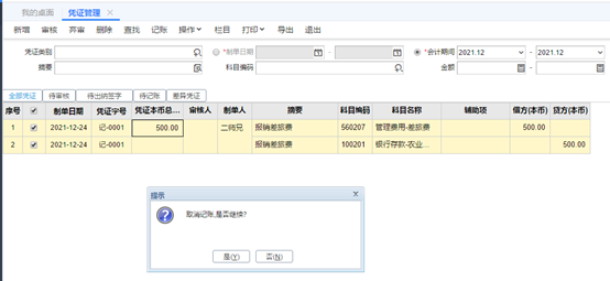 憑證的反記賬 T+憑證反記賬在憑證管理界面,勾選上要反記賬的憑證,同時按Ctrl+Alt+H。