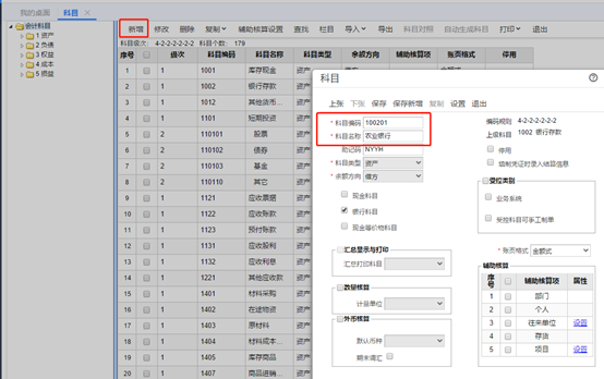 點擊新增,然后根據(jù)科目級次規(guī)則,輸入科目編碼、科目名稱,最后點擊保存。