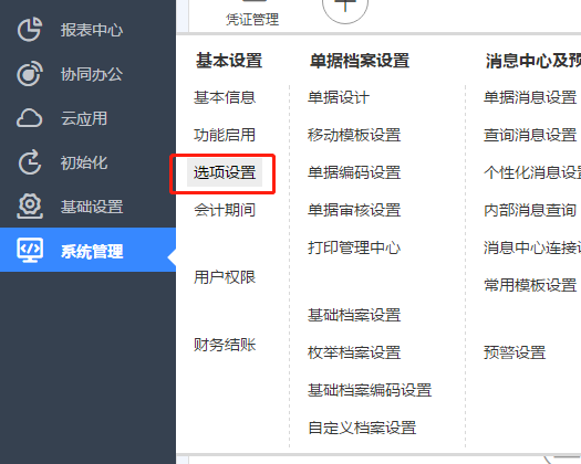 ② 選項設(shè)置 系統(tǒng)管理->選項設(shè)置,可以在這里面修改各種選項。