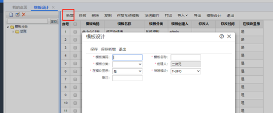②模板設(shè)計 若是想要設(shè)計報表模板,可以在模板設(shè)計界面點擊新增。