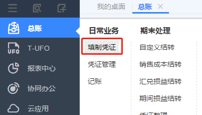 ②憑證增、刪、改、查以及審核、記賬、打印、輸出 點擊總賬->填制憑證。