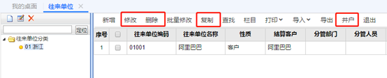 在這里可以對往來單位進行修改、刪除、復(fù)制以及并戶。