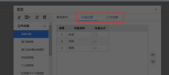 通過設(shè)置分組設(shè)置和表頭二次過濾可以自定義條件。