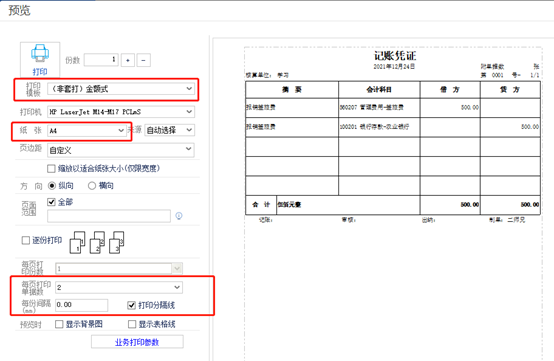 憑證打印 根據(jù)實際的需要,選擇模板、紙型,并調(diào)整邊距。