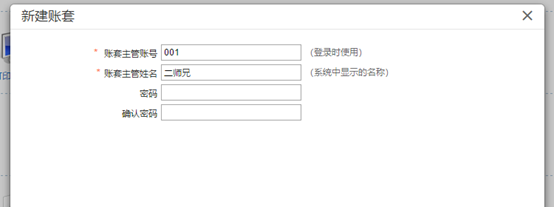 輸入賬套名稱、單位名稱等,其中帶星號的為必錄項。