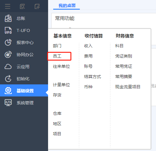 ②員工的增加、刪除、修改 若是想要進行個人輔助核算,點擊基礎(chǔ)設(shè)置->員工。