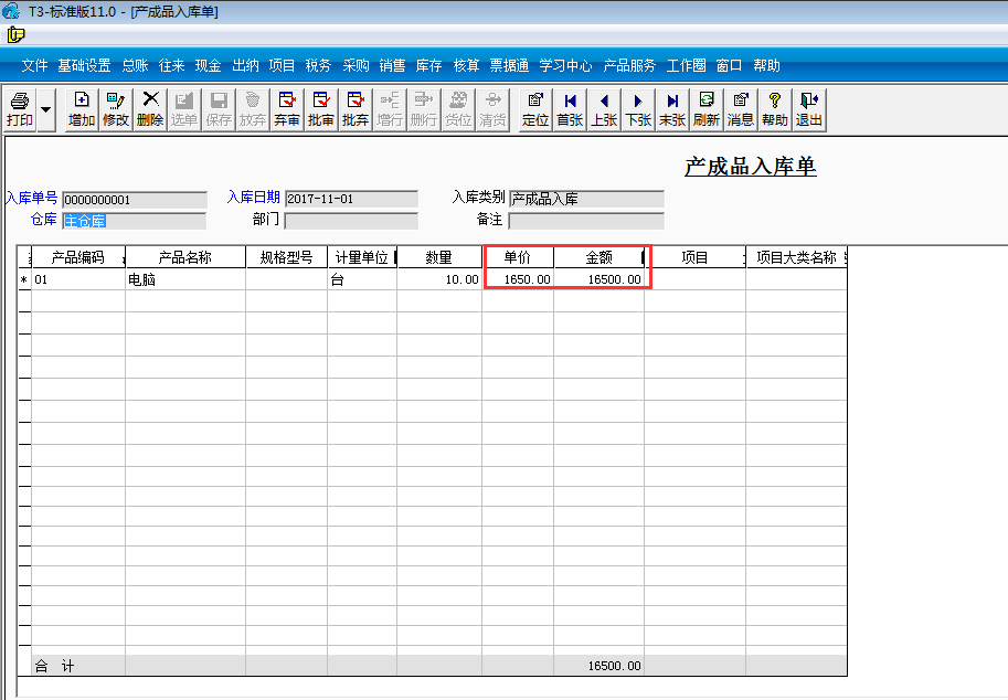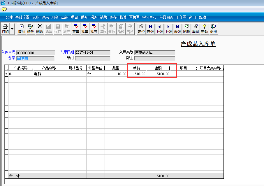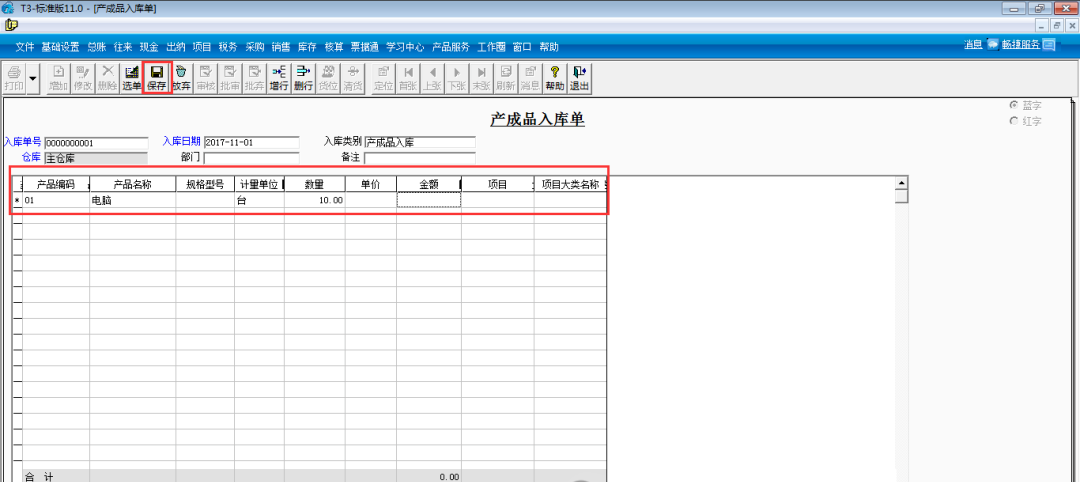 四、填制產(chǎn)成品入庫(kù)單(單價(jià)為空)保存: