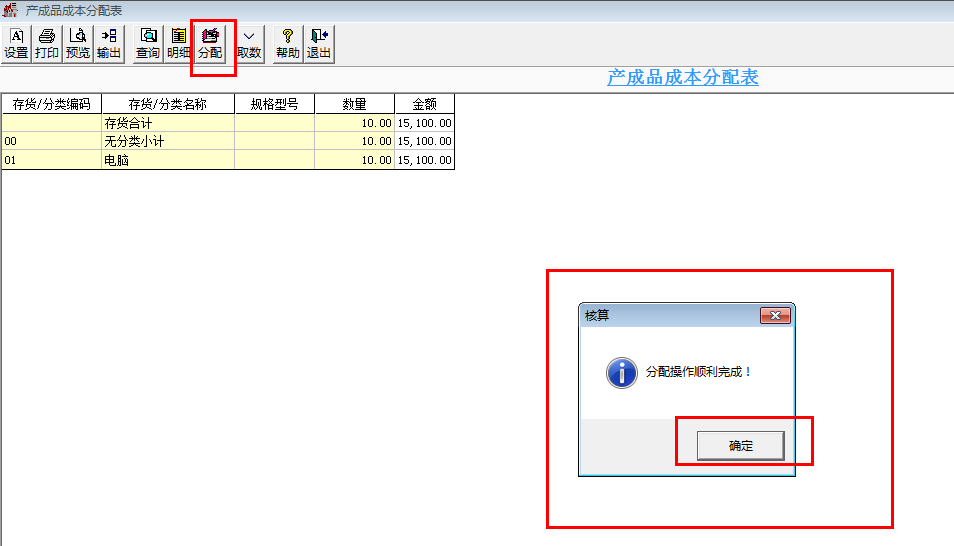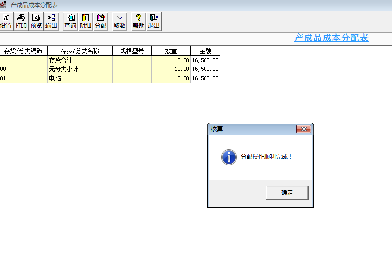 2. 點(diǎn)擊分配,則會(huì)出現(xiàn)分配操作順利完成的對(duì)話框,點(diǎn)擊確定即可:
