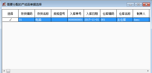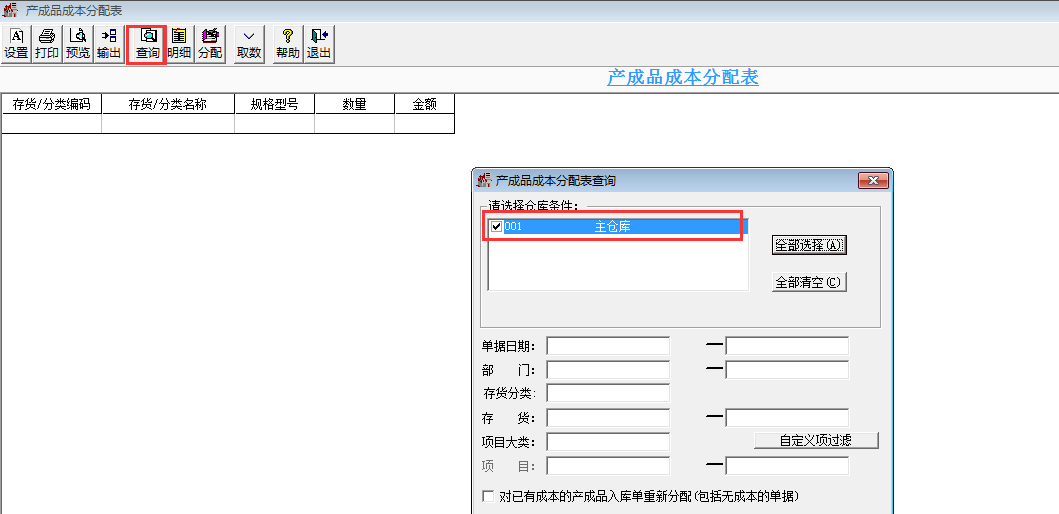 2.點(diǎn)擊查詢,選中倉(cāng)庫(kù),點(diǎn)擊確認(rèn)