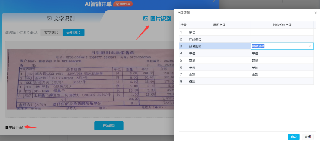 選擇圖片后,會(huì)根據(jù)圖片信息智能對(duì)照匹配軟件中字段,如果有不同對(duì)照,可通過“字段匹配”進(jìn)行修改調(diào)整。 點(diǎn)擊“圖片識(shí)別”后將自動(dòng)按照對(duì)照設(shè)置把圖片表體內(nèi)容匹配到單據(jù)表體中。識(shí)別規(guī)則如下: ?如圖中有商品編號(hào)、全名字段時(shí),則優(yōu)先按商品編號(hào)匹配。無編號(hào)有全名時(shí),則按全名進(jìn)行匹配查找。 ?如圖中有商品計(jì)量單位,而軟件無計(jì)量單位,則忽略計(jì)量單位可讀取。 ?如圖片無計(jì)量單位,而軟件有計(jì)量單位,則自動(dòng)按基本單位顯示。 ?如圖片計(jì)量單位與軟件計(jì)量單位不符時(shí),則進(jìn)行錯(cuò)誤檢測(cè)提示。 ?在匹配商品信息時(shí),如圖片中無單價(jià),有金額、數(shù)量,則按照金額/數(shù)量,反算單價(jià)。 ?如圖片有單價(jià)、金額、數(shù)量、折扣、稅率等字段,則直接按圖片中信息讀取到對(duì)應(yīng)字段中,不反算計(jì)算。 ![]() 更多管家婆軟件操作問題,可以聯(lián)系梁老師17374708361 長(zhǎng)按識(shí)別二維碼添加好友,及時(shí)解答