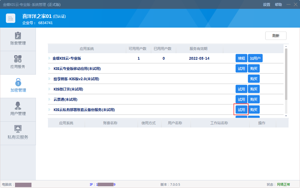 (四)云端自動(dòng)備份 云端自動(dòng)備份為本次增加了重要內(nèi)容,主要針對(duì)KIS云·專業(yè)版V16.0、KIS云·商貿(mào)版V9.0和KIS云·旗艦版V7.0的私有云和許可模式產(chǎn)品(以下簡(jiǎn)稱:KIS云主產(chǎn)品)提供的訂閱服務(wù)。金蝶KIS云私有部署賬套云備份服務(wù)為副產(chǎn)品,僅為已購(gòu)買正版金蝶KIS云主產(chǎn)品的客戶提供服務(wù)。 1、云端自動(dòng)備份試用控制 云端自動(dòng)備份功能試用僅針對(duì)KIS云的正式用戶提供。已購(gòu)買正版金蝶KIS云主產(chǎn)品并且在服務(wù)期內(nèi),提供1賬套3天有效期試用,試用到期后自動(dòng)關(guān)閉云端自動(dòng)備份,試用期間的云端備份數(shù)據(jù)允許下載。
