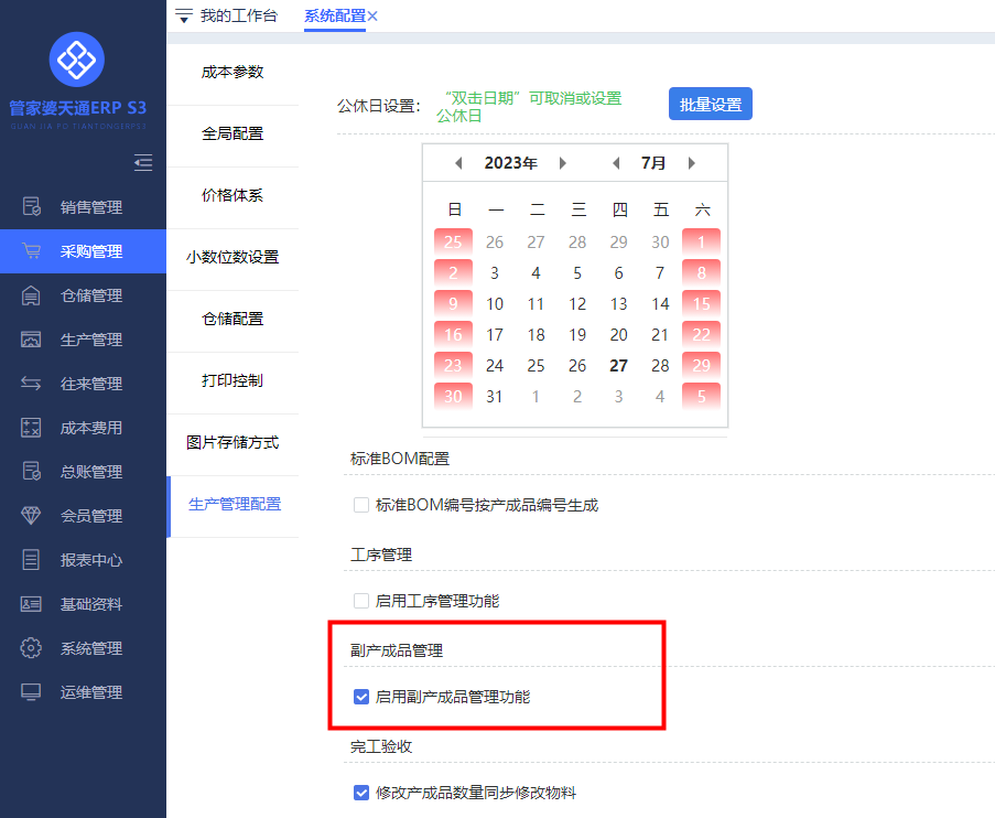 天通ERP S3軟件中的副產成品管理功能,可以解決上面的業(yè)務需求。