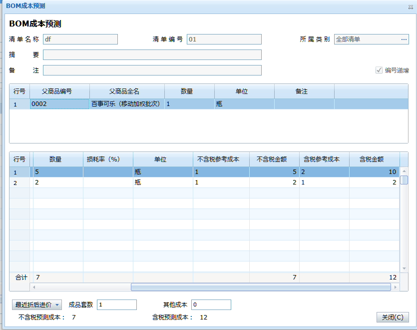 可手動(dòng)輸入,輸入后將計(jì)入預(yù)測(cè)成本中,預(yù)測(cè)成本=成本金額*成品套數(shù)+其他成本。