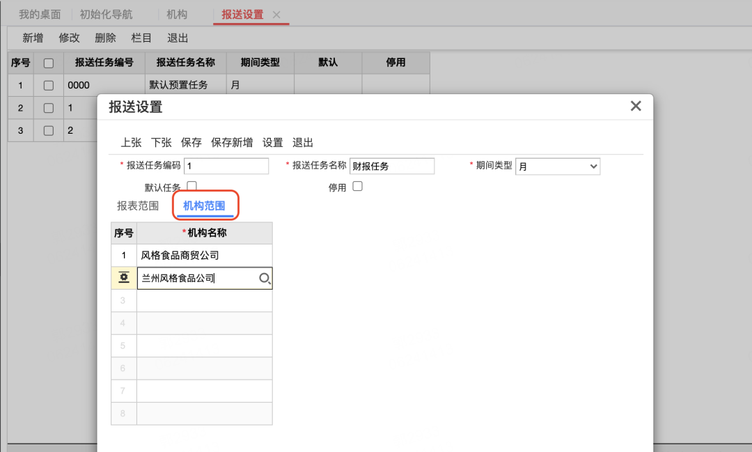 設(shè)置機(jī)構(gòu)報(bào)表任務(wù) 總部在新TUFO中,根據(jù)報(bào)表分析目的,可以設(shè)置多個(gè)報(bào)送任務(wù),比如:財(cái)報(bào)任務(wù)、管報(bào)任務(wù)、華北區(qū)經(jīng)營報(bào)表任務(wù)等等; 操作說明: 新增→設(shè)置期間類型→設(shè)置是否合并→設(shè)置報(bào)表范圍→設(shè)置機(jī)構(gòu)范圍→保存。 協(xié)同默認(rèn)值設(shè)置 如果需要總部用戶登錄機(jī)構(gòu)填制憑證(總部會(huì)計(jì)負(fù)責(zé)某個(gè)機(jī)構(gòu)賬),需要提前設(shè)置協(xié)同默認(rèn)值; 操作說明: