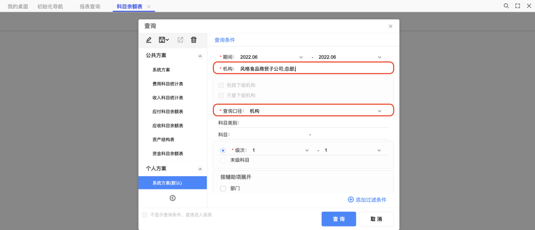 機(jī)構(gòu)可以使用的財(cái)務(wù)模塊 包括:總賬、TUFO、往來管理、出納管理,暫不支持使用資產(chǎn)管理、薪資管理、稅務(wù)管理、發(fā)票管理等其他財(cái)務(wù)功能。 檔案管控維護(hù) 科目 登錄總部,維護(hù)管控科目; 機(jī)構(gòu)子賬套不會(huì)自動(dòng)創(chuàng)建科目檔案,需要總部下發(fā); ![]() ![]() 操作順序